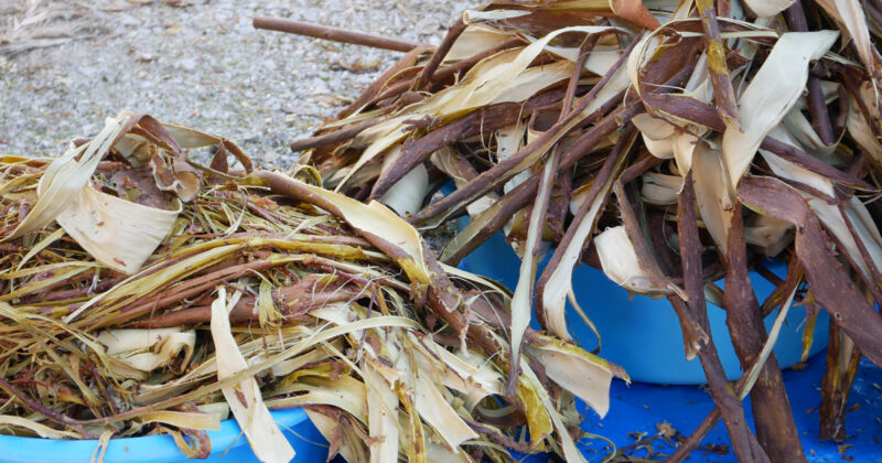 12月13日(土)、紙の館裏庭において、紙漉きに使う原料づくり「かわむき大会」を... -